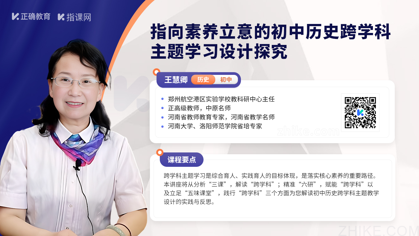课程简介:跨学科主题学习是综合育人、实践育人的目标体现,是落实核心素养的重要路径。本讲座将从分析“三课”,解读“跨学科”;精准“六研”,赋能“跨学科”以及立足“五味课堂”,践行“跨学科”三个方面为您解读初中历史跨学科主题教学设计的实践与反思。