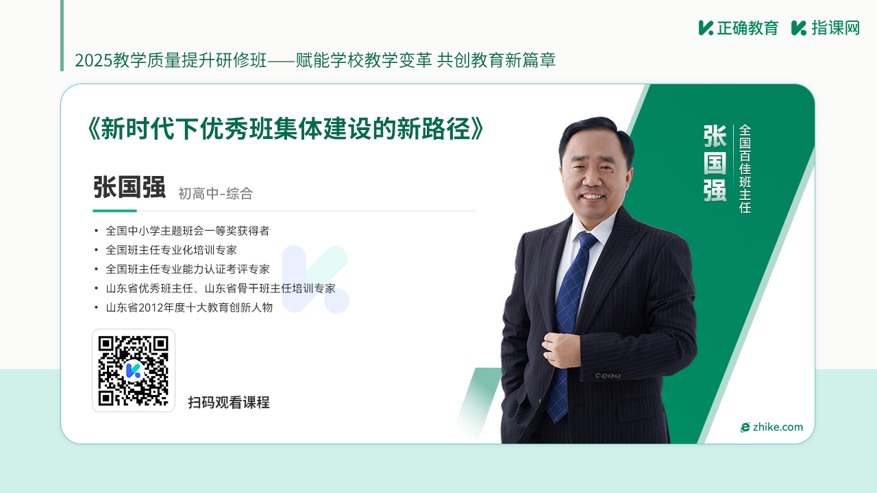 张国强,中国教育专家网高级专家,全国百佳班主任,全国中小学主题班会一等奖获得者,全国班主任专业化培训专家,全国班主任专业能力认证考评专家,山东省优秀班主任,山东省2012年度十大教育创新人物,山东省骨干班主任培训专家,山东省家庭教育指导专家,《教师》、《教师博览》、《新班主任》等封面人物,北京开放大学家庭教育学院特聘课程专家,中国石油大学、中国海洋大学、青岛大学、山东师范大学、云南师范大学、陕西师范大学、鲁东大学等大学特聘教育培训专家,《山东教育报》专栏记者,青岛市首届名班主任,青岛市首届名班主任工作室主持人,青岛市城阳区名班主任工作室首席专家;已出版教育专著《心会随爱一起走》、《聆听花开的声音》和《教育,可以做出幸福的味道来》;《教育转化后进生始于尊重》等多篇文章发表在《中国教育报》、《中小学德育》、《班主任》、《新班主任》等报刊杂志;多年致力于后进生的教育转化,把论语与班级管理融为一体,进行“有爱无类”教育,事迹多次被《山东教育电视台》、《山东教育报》、《教师博览》、《新班主任》《德育报》、《教育家》等报刊媒体报道;应邀赴全国各地作班级管理教育报告二百余场。