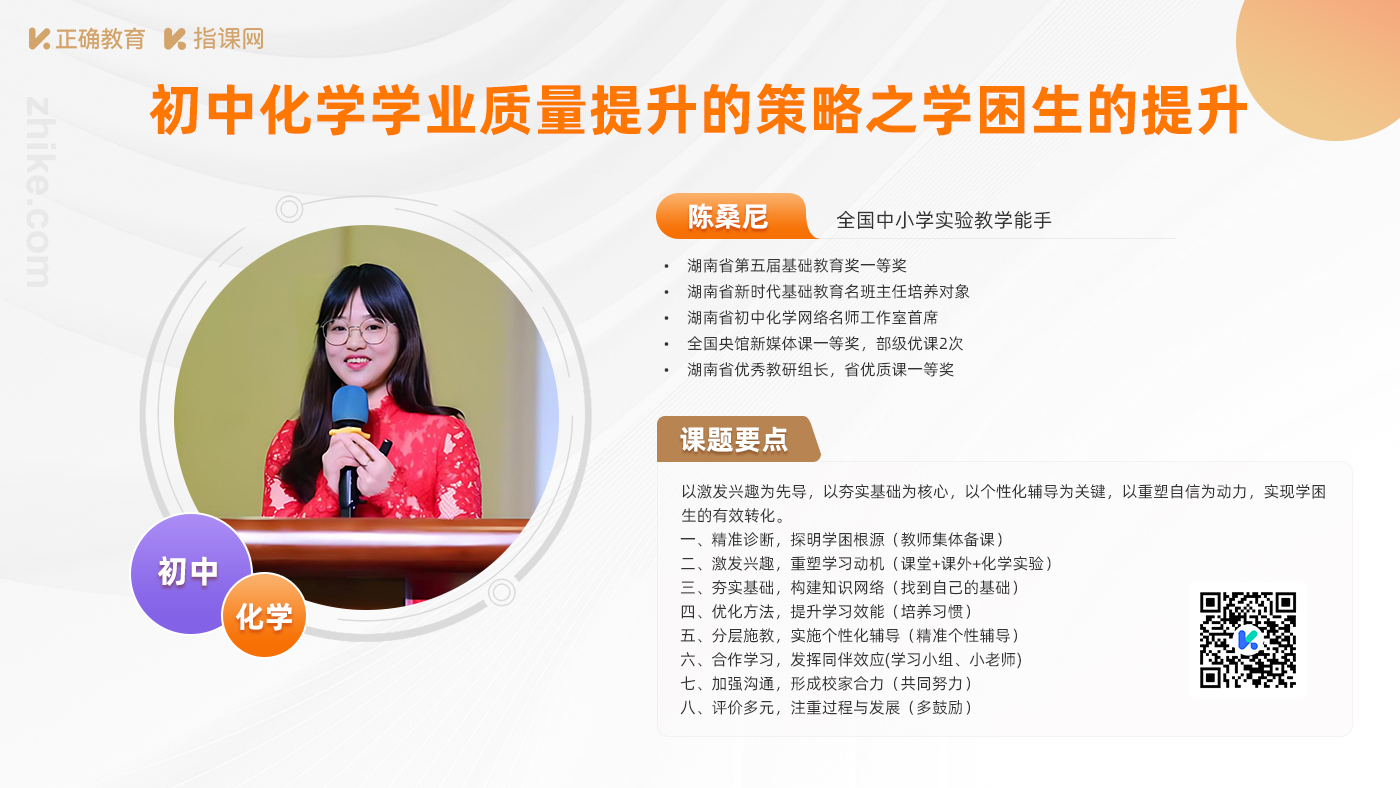 课程主题:初中化学学业质量提升的策略之学困生的提升