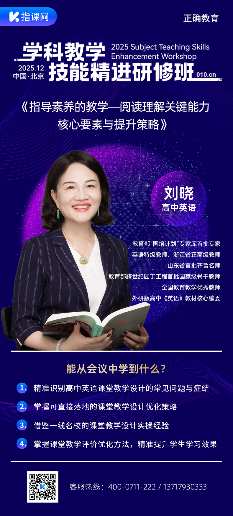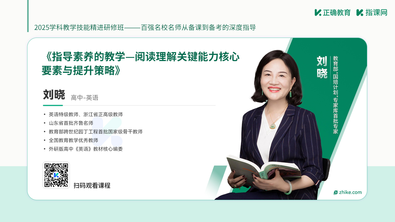 课程主题:指导素养的教学—阅读理解关键能力核心要素与提升策略