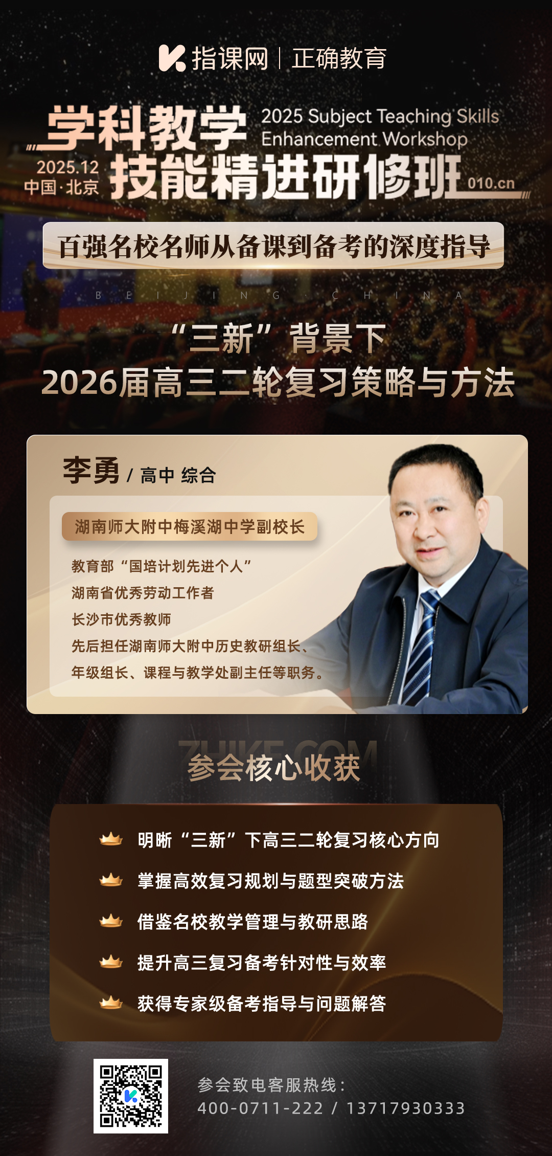 课程主题 :“三新”背景下2026届高三二轮复习策略与方法