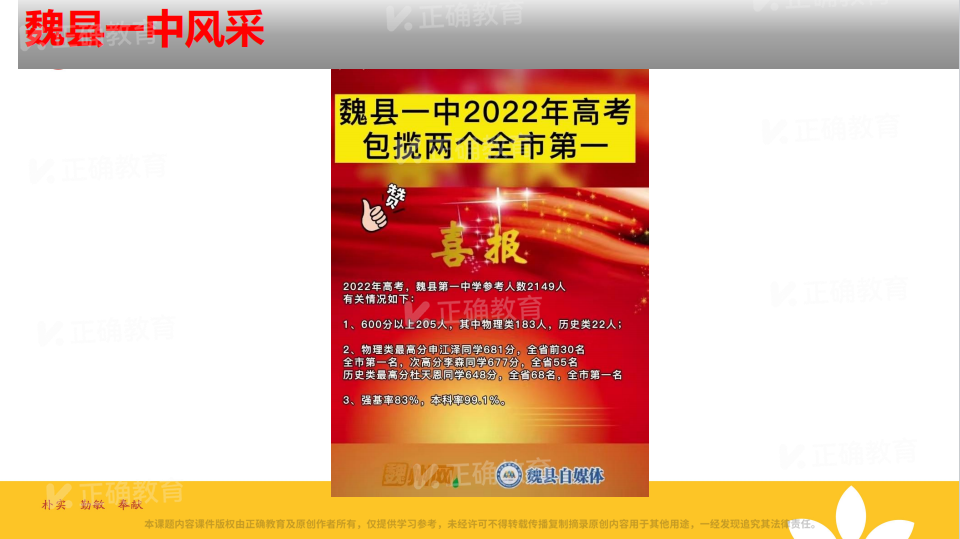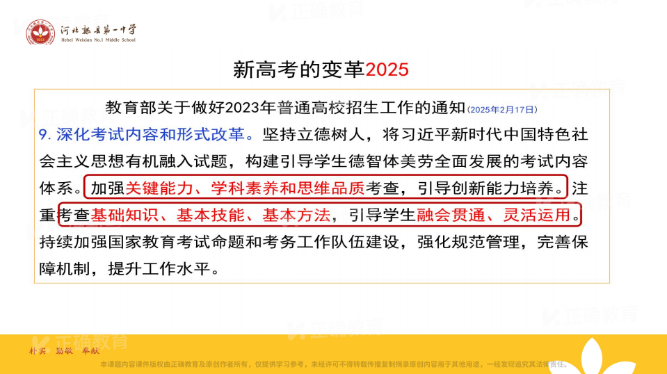 “三新”背景下,魏县一中以“分工协作+机制保障”打造高能物理备考团队。教研组细化课件、命题、实验等分工,实行“一课一研三备三研”与抽签讲高考题,配套整体-个体双轨考核,形成抱团共进氛围;构建“基础巩固—专题整合—综合冲刺—自主保温”四轮复习体系,同步推进真题深耕、分层教学、实验实操、错题闭环,精准破解基础题失分与实验题短板;课堂实行“自查自纠+六步讲评+互动探究”模式,以数据驱动靶向讲解,培养学生规范与思维。团队、策略、课堂三维联动,实现从“教师苦教”到“学生善学”的转型,为县域高中提供可复制、可推广的物理备考样本。