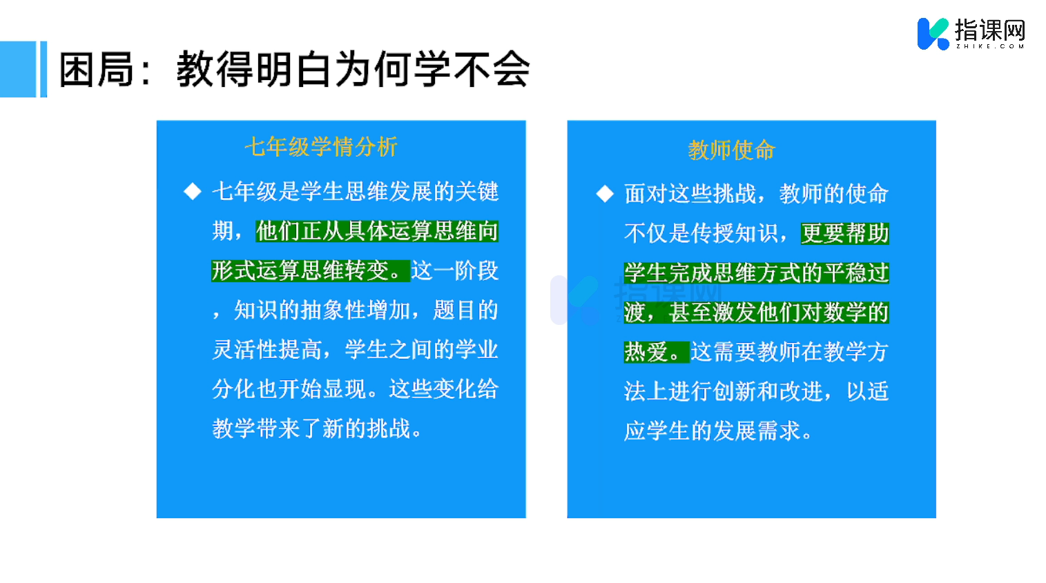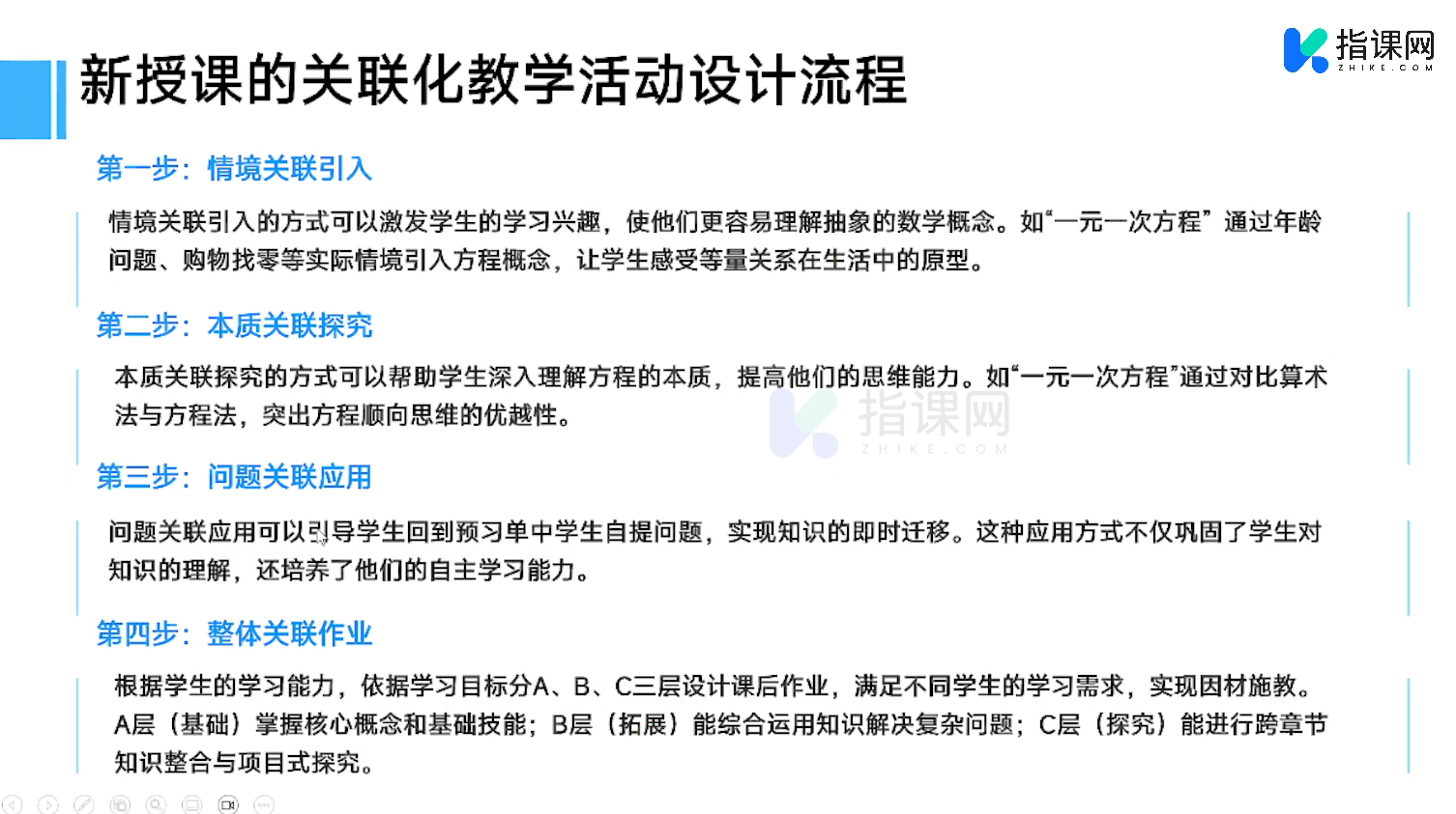 本课题以“学—教—评一致性”为轴,构建七年级数学学习方法培养系统:理念上,将“关联”嵌入目标、活动、评价三环节,使知识、思维、情感同频共振;实操上,先搭“关联化预习—复习”双循环,用前置任务单、思维导图把生活问题与数学概念挂钩,再设分层作业与错因追踪,促理性思维螺旋上升;课堂层面,以《一元一次方程》为例,设计“情境建模—多元表征—即时评价”链,学生自评、互评、教师赋分三线并进,实现“教到哪、学到哪、评到哪”无缝衔接,最终让教师从知识传递者转为“点燃思维火花的关联者”,学生习得可持续的数学自主学习能力。