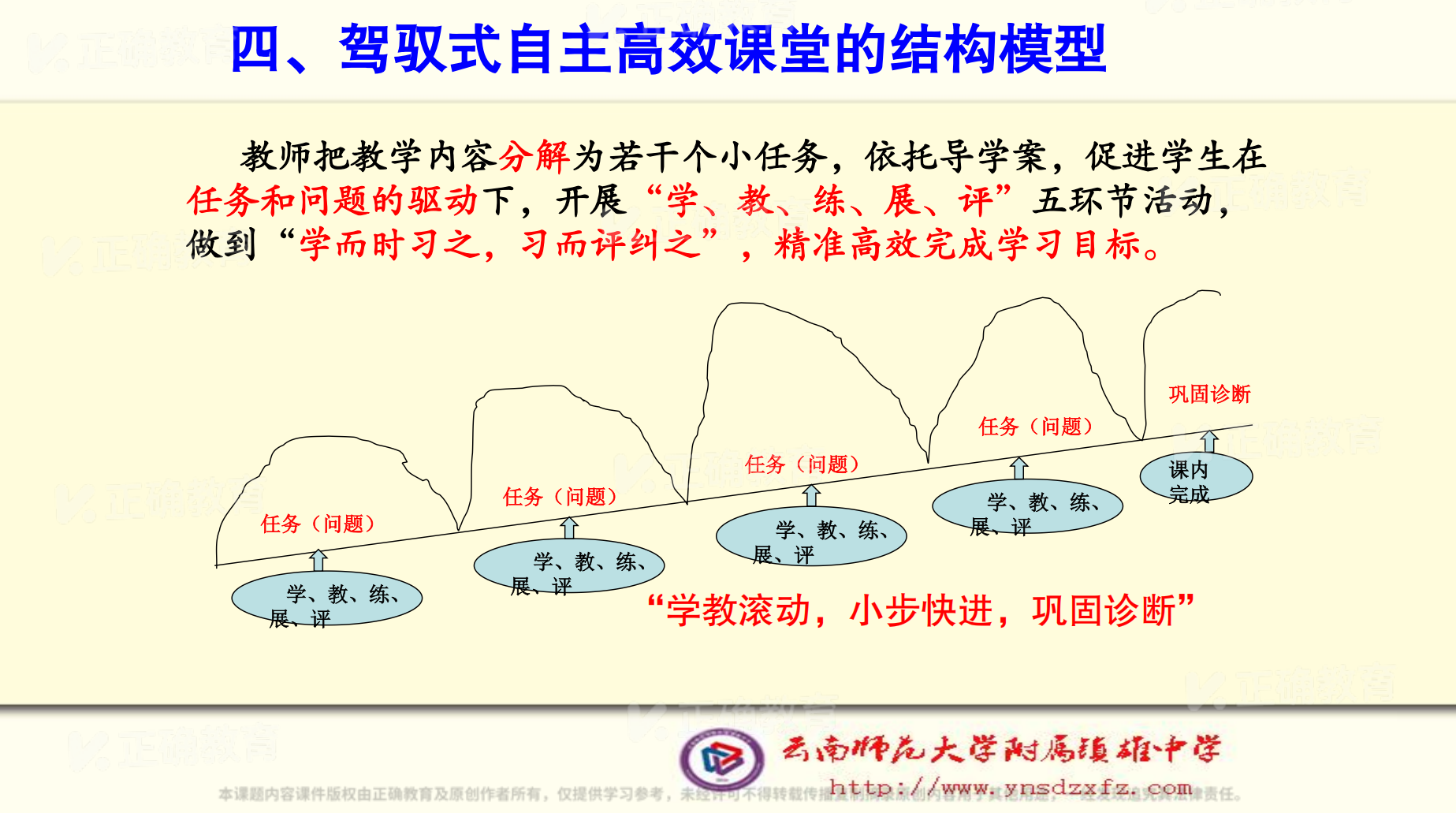 本课题针对“双新”背景下课堂效率低、学生参与度弱、教师主导缺位等痛点,提出“驾驭式自主高效课堂”整体方案。研究溯源“自主—驾驭”辩证关系,界定“学生真自主、教师巧驾驭、目标可达成”三维内涵,确立“以学定教、动态驾驭、即时评价、当堂达标”四大理念;构建“导学案—小组合作—教师驾驭”三位一体结构模型:导学案设置“问题链—任务串—反思梯”,实现学习路径可视化;小组合作实行“异质同组、角色轮换、捆绑评价”,保障生生互动深度;教师驾驭聚焦“点火、搭桥、纠偏、升华”四招,把讲解压缩至15分钟内,实现精准点拨。课题同步开发“操作系统+课堂评价+质量保障”闭环体系:课前网络前测生成“红黄绿”学情图,课中即时扫码上传、AI统计当堂达成度,课后跟踪错题再测,数据驱动教学改进。成果输出平台软件、操作手册与示范课包,为县域高中提供可复制、可推广的轻负高效范式,助力课堂从“教中心”向“学中心”深度转型。