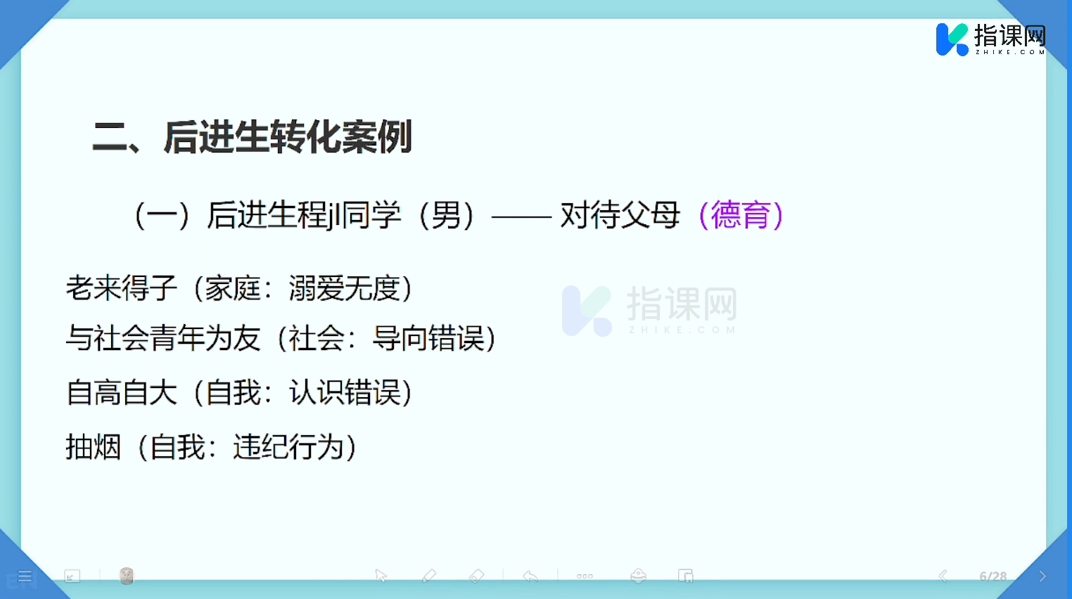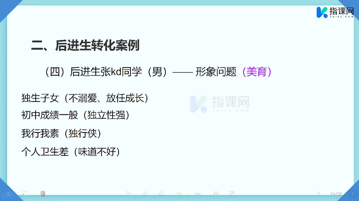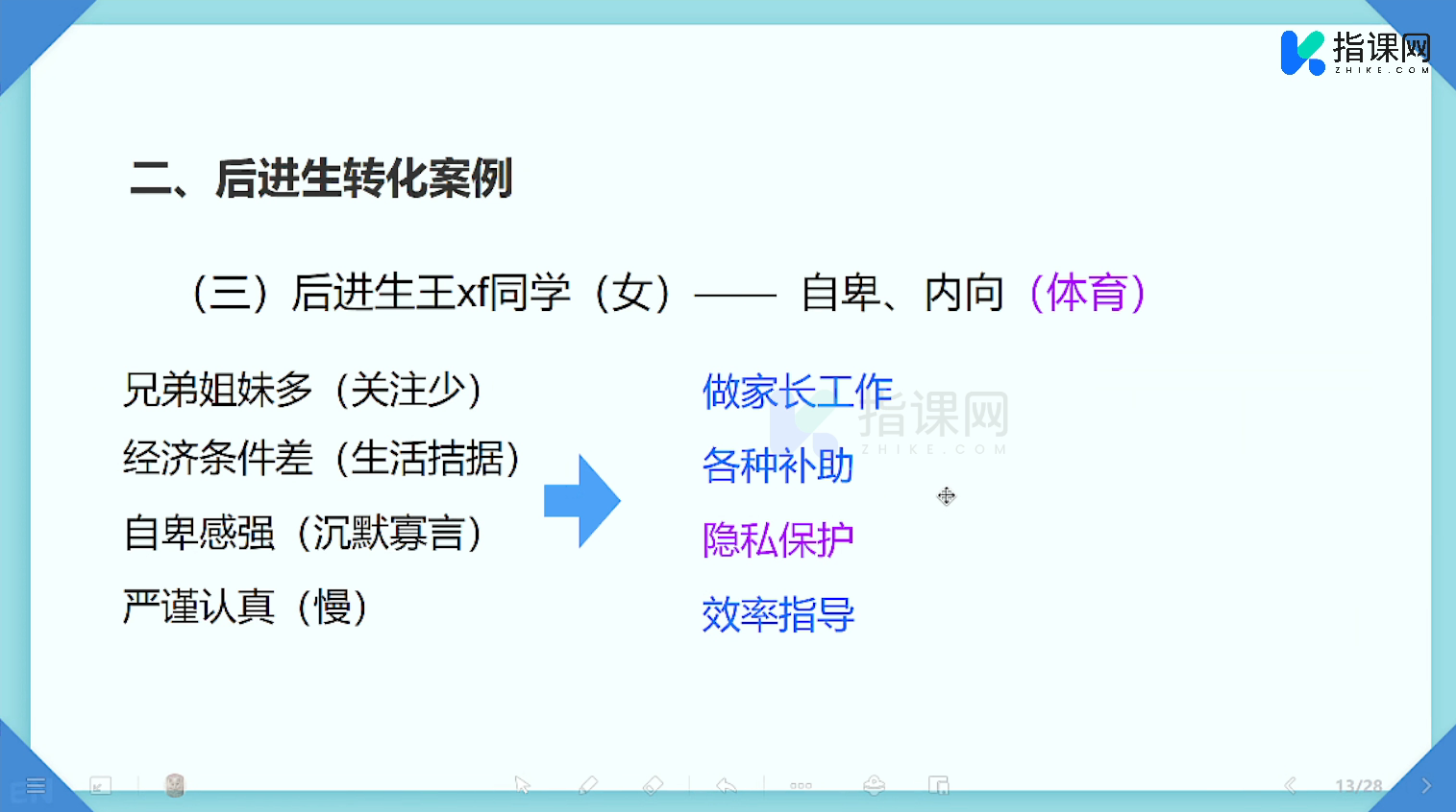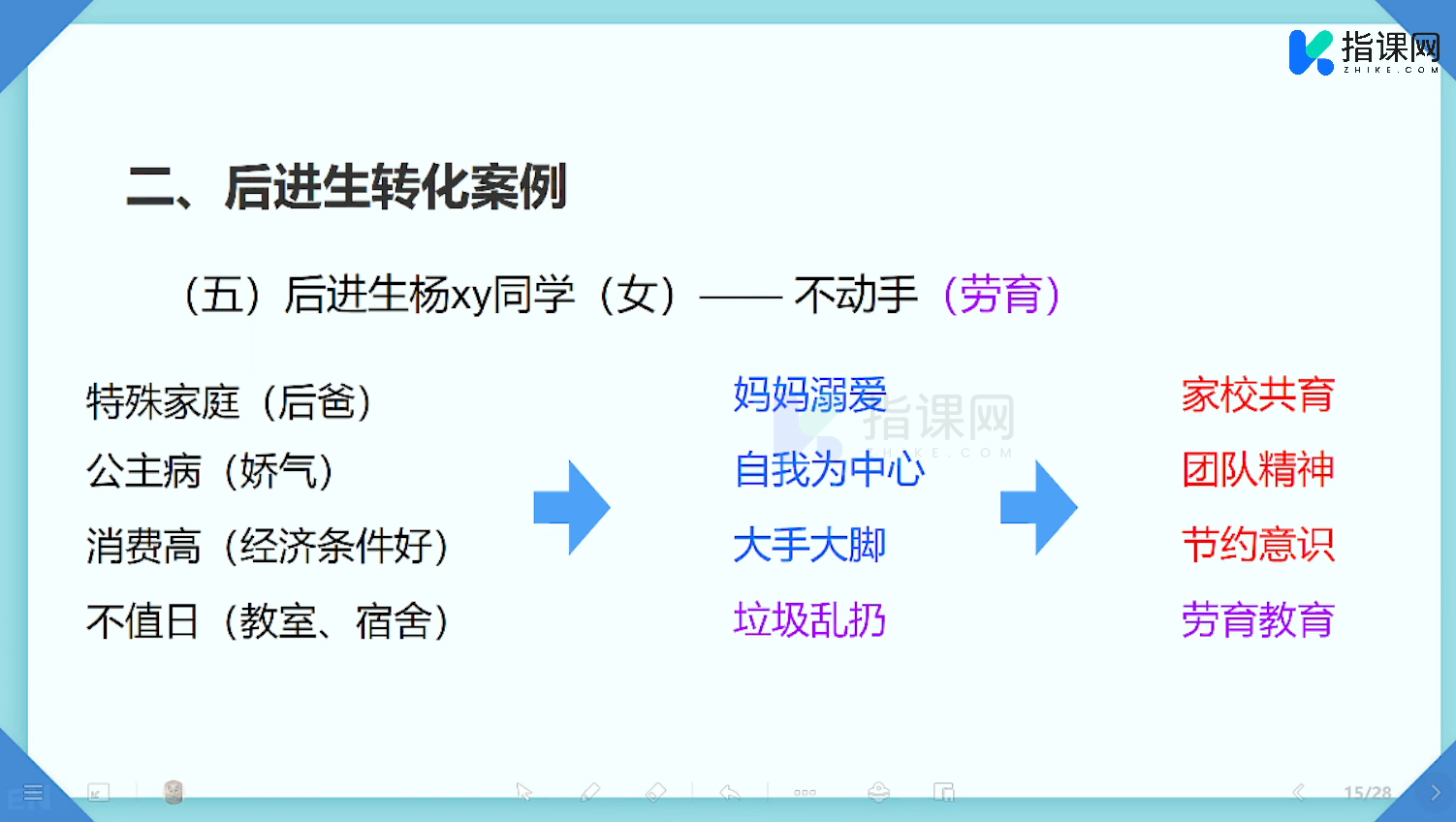 本课题以《后进生转化案例及策略探究》为蓝本,系统梳理“后进生”概念:德智体美劳某方面发展相对滞后。精选德育程同学(溺爱、违纪)、智育马同学(衔接障碍)、体育王同学(自卑贫困)、美育张同学(卫生形象差)、劳育杨同学(娇气惰值)五案例,剖析家庭、学校、社会多维成因,提炼“找原因、对症下药”经验。继而提出转化建议:树立正确学生观,增强自信,激发动机;捕捉闪光点,持续期待,家校协同。案例与策略互证,为一线教师提供可复制、可推广的“后进生”干预范式,具有现实针对与推广价值。